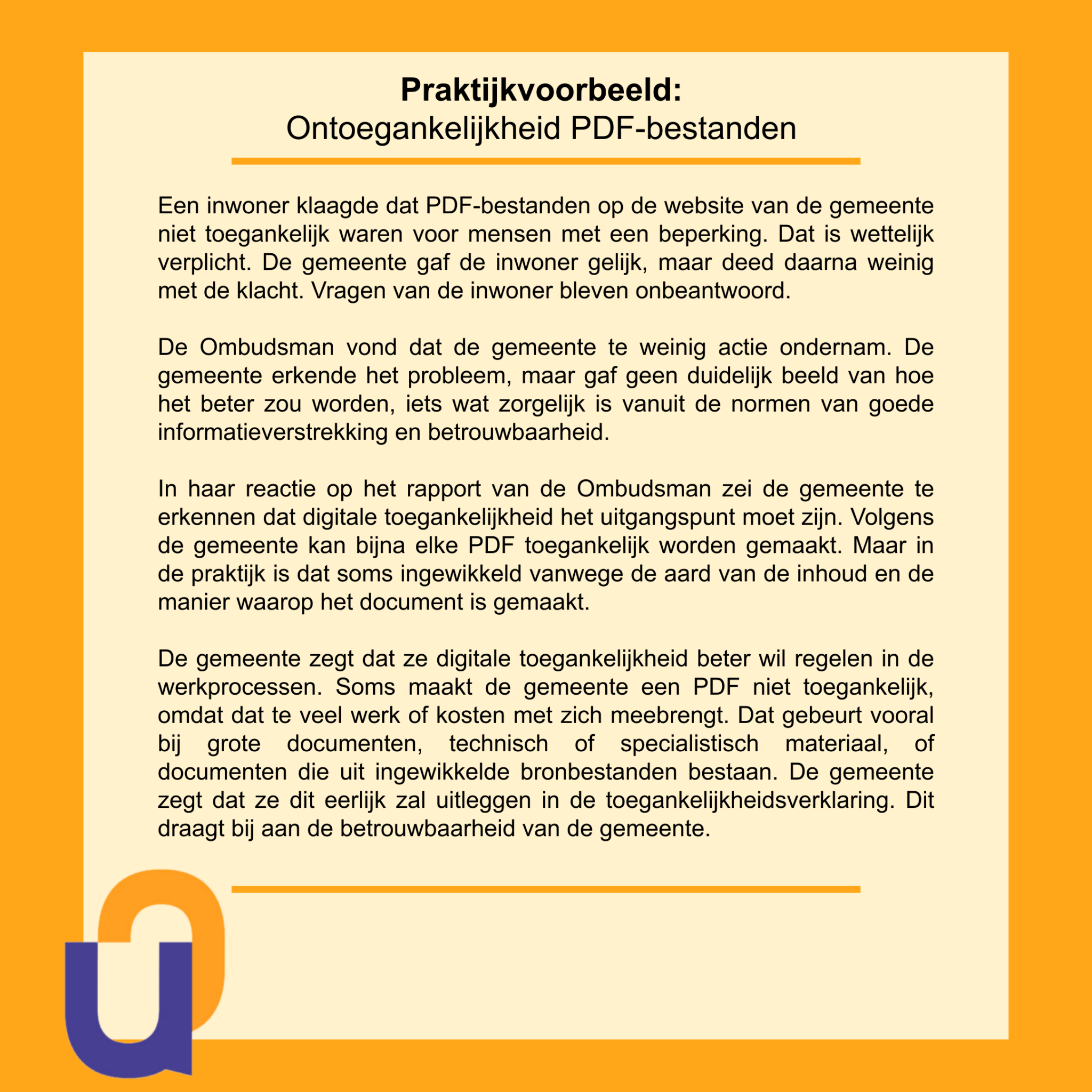 Klik hier voor een praktijkvoorbeeld bij deze behoorlijkheidsnormen over ontoegankelijke PDF-bestanden.